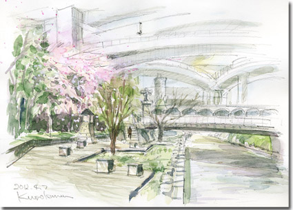 寒さと強風に震えながら黒川でスケッチ…