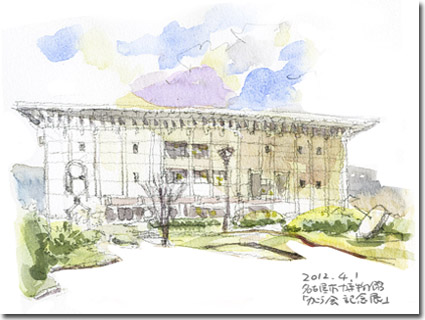 記念展最終日、少し早めにきて博物館をスケッチ