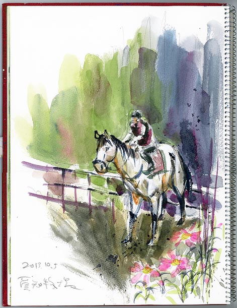 今日は、夏日、日陰を探してスケッチ。