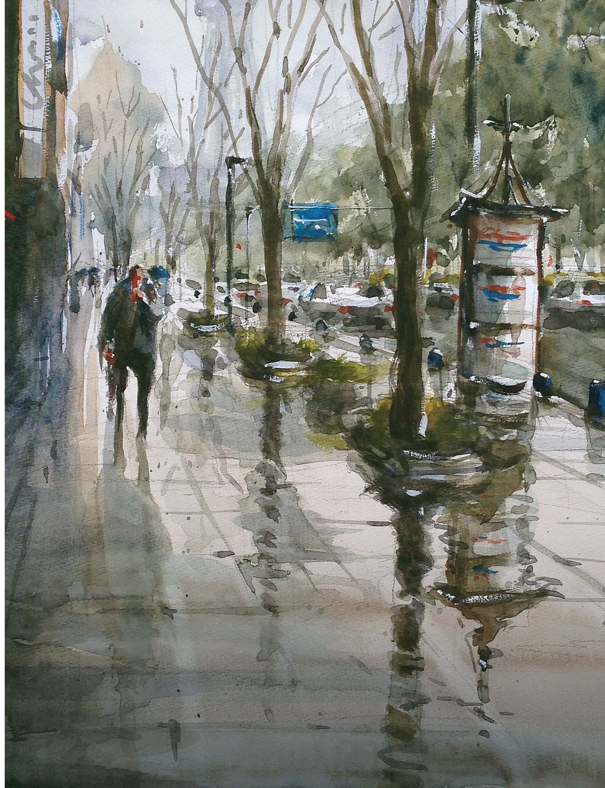 小雨の降るセントラルパークの横にて